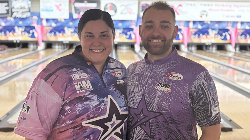 HOUSTON – After two days of qualifying at the Professional Bowlers Association/Professional Women’s Bowling Association Striking Against Breast Cancer Mixed Doubles, Frank and Jordan Snodgrass of Tipton, Michigan, took the overall lead heading into Sunday’s semifinal round with a combined seven-game total of 3,150.